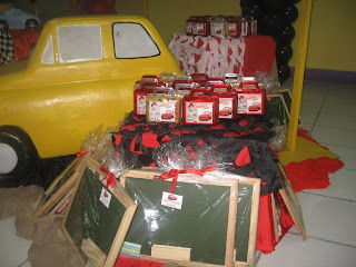 No dia 21 de maio fui para o aniversário do GABRIEL, sua mãe LARISSA estudou comigo na faculdade e depois de muitos anos nos encontramos. Ela pediu p fazer as coisinhas do aniversário do Gabriel, fiquei muito realizada pq ela confiou totalmente em mim e agora vou mostrar como ficou o aniversário. Essas fotos são das lancheirinhas: maleta de acrilico e a lembrancinhas: quadro negro com giz e apagador. Fui convidada para o aniversário e AMEI, foi muito organizado e super divertido.
