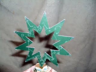 Nessa estrela usei a parte de dentro da outra estrela e coloquei nas pontas tinta com glitter.